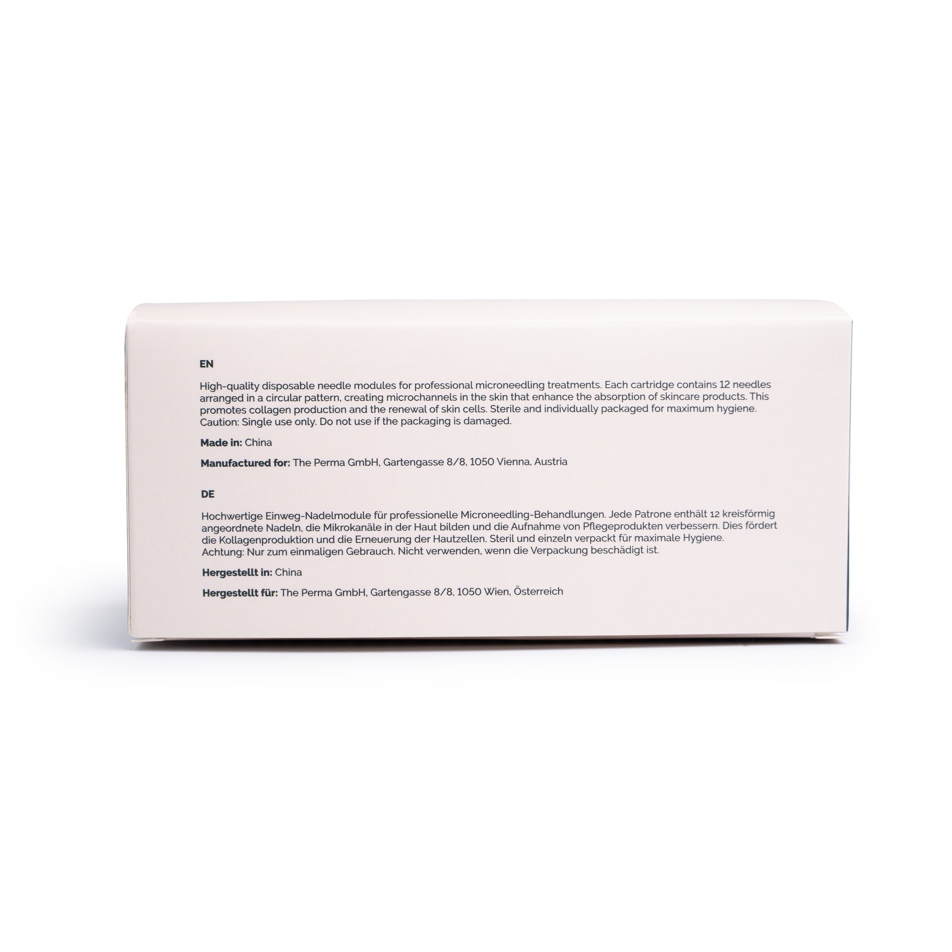 Moduli di aghi monouso di alta qualità per trattamenti professionali di microneedling. Ogni cartuccia contiene 12 aghi disposti in modo circolare, creando microcanali nella pelle che migliorano l'assorbimento dei prodotti per la cura della pelle. Questo favorisce la produzione di collagene e il rinnovamento delle cellule cutanee. Sterili e confezionati singolarmente per la massima igiene.